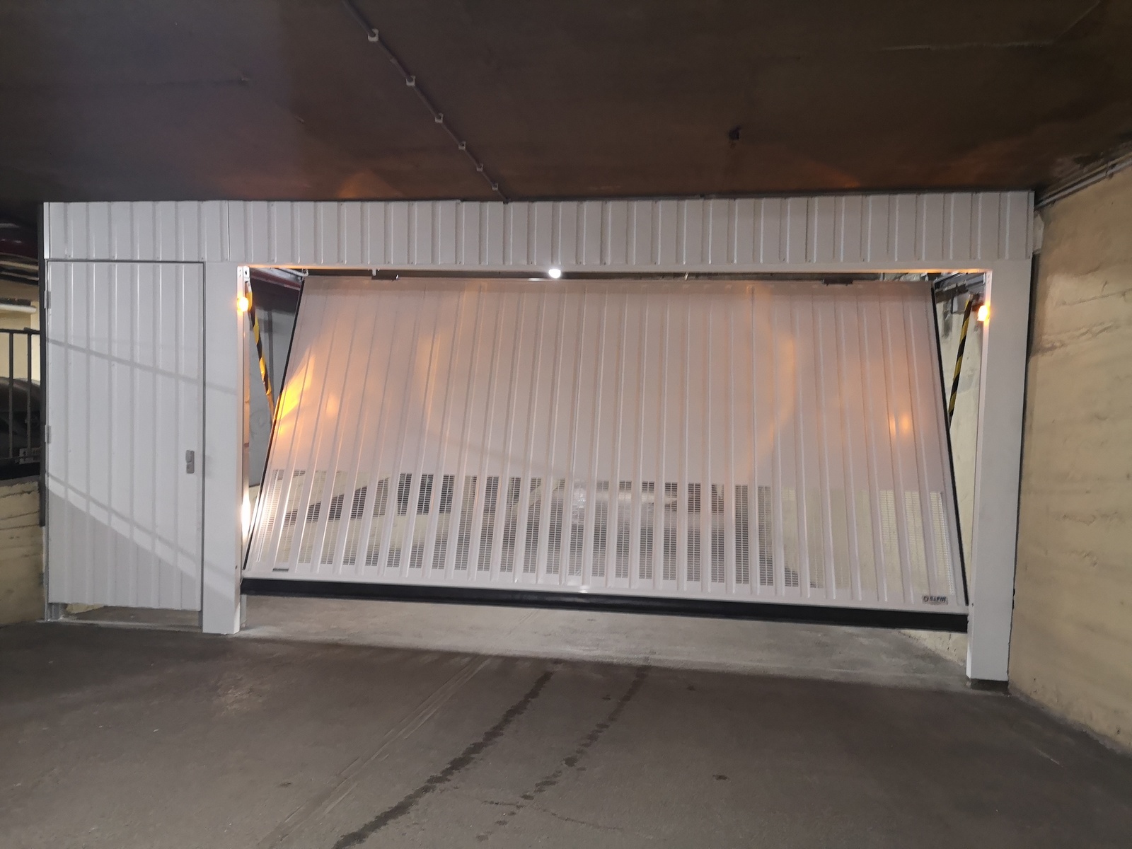 La porte sectionnelle est une solution qui conviendra toujours car elle est modulable et adaptable. Elle fonctionnera très bien dans cette application mais elle ne sera peut-être pas toujours le meilleur choix. Dans certains cas, il est parfois préférable d’envisager une porte basculante pour usage intensif, plus chère à l’achat mais plus économe à l’entretien. Nous proposons 2 versions différentes, suivant les espaces disponibles dans le parking, à savoir une porte type basculante à ouverture vers le haut et une porte à ouverture latérale.